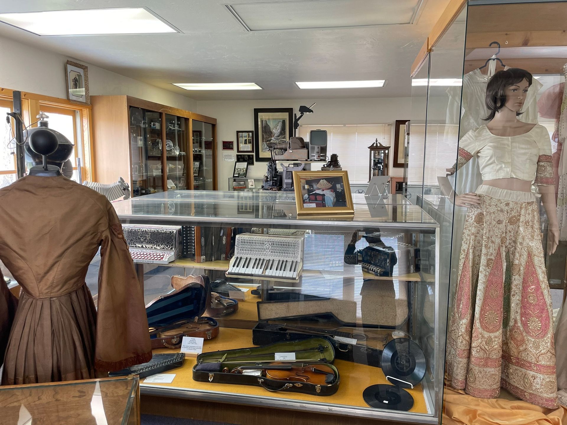This two-story building was originally the Western Motel’s restaurant, located west of the museum. Restoration of the building was completed in 1997. This building contains exhibits such as the Colorado Cannibal, dolls, musical instruments, pewter and silverware, photography equipment and photos, paintings, arrowhead and Native American artifacts, and an